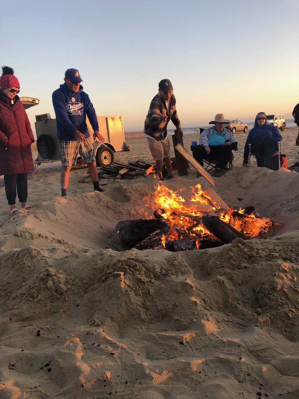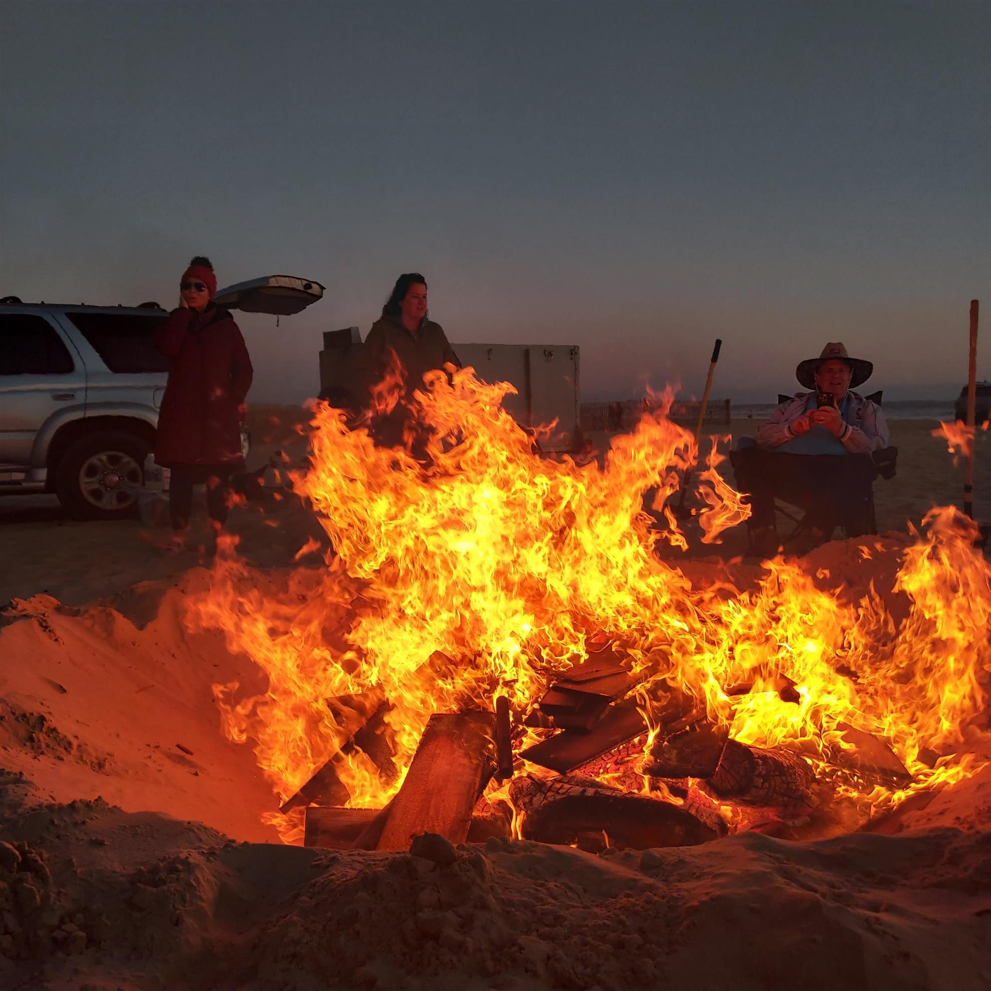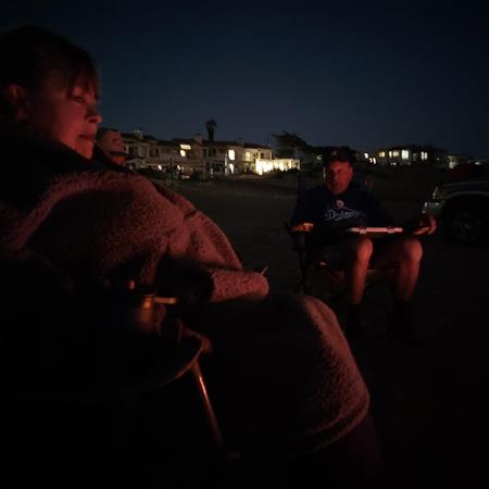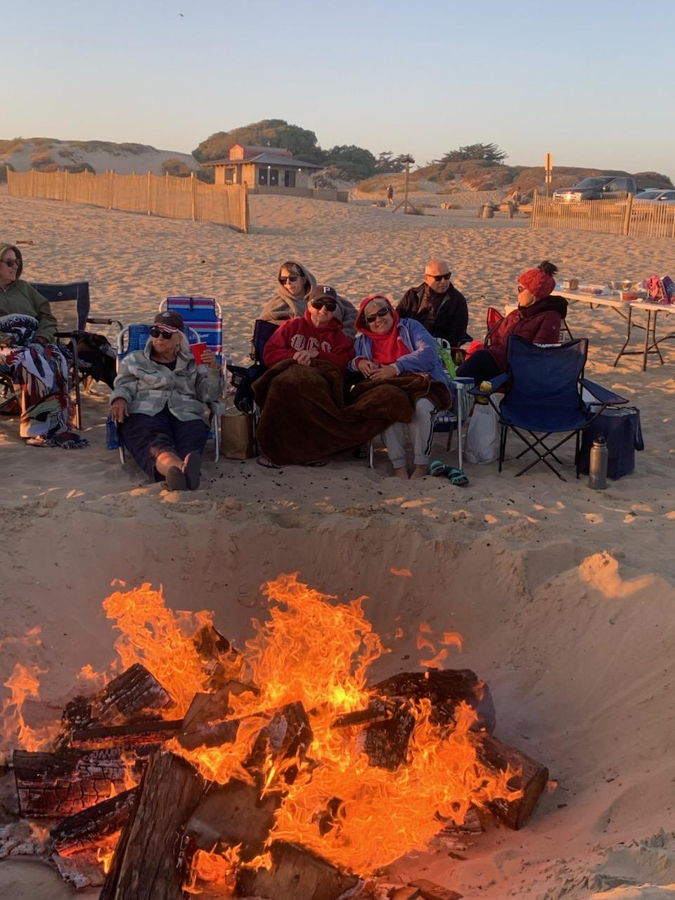 Perfect Oceano Beach weather made for a beautiful evening with delicious brats and dogs, lovely sunset, and a roaring fire! Top it all off with Gary's stuck truck/trailer and a Tsunami Advisory!