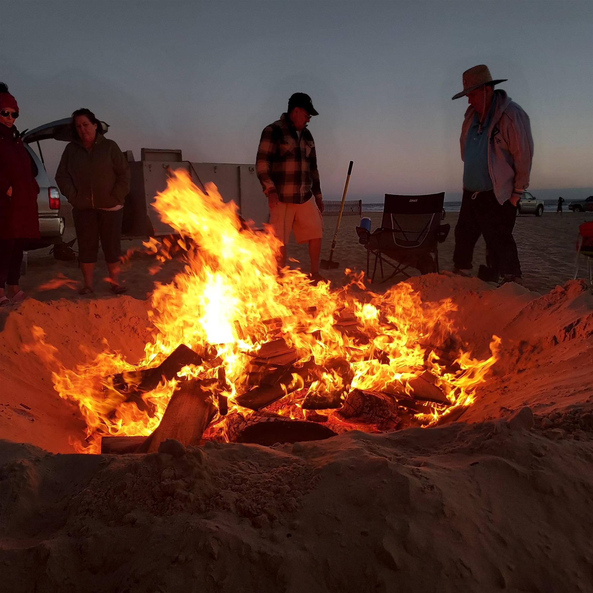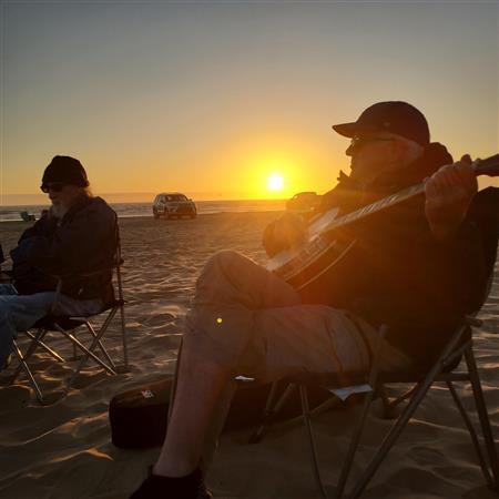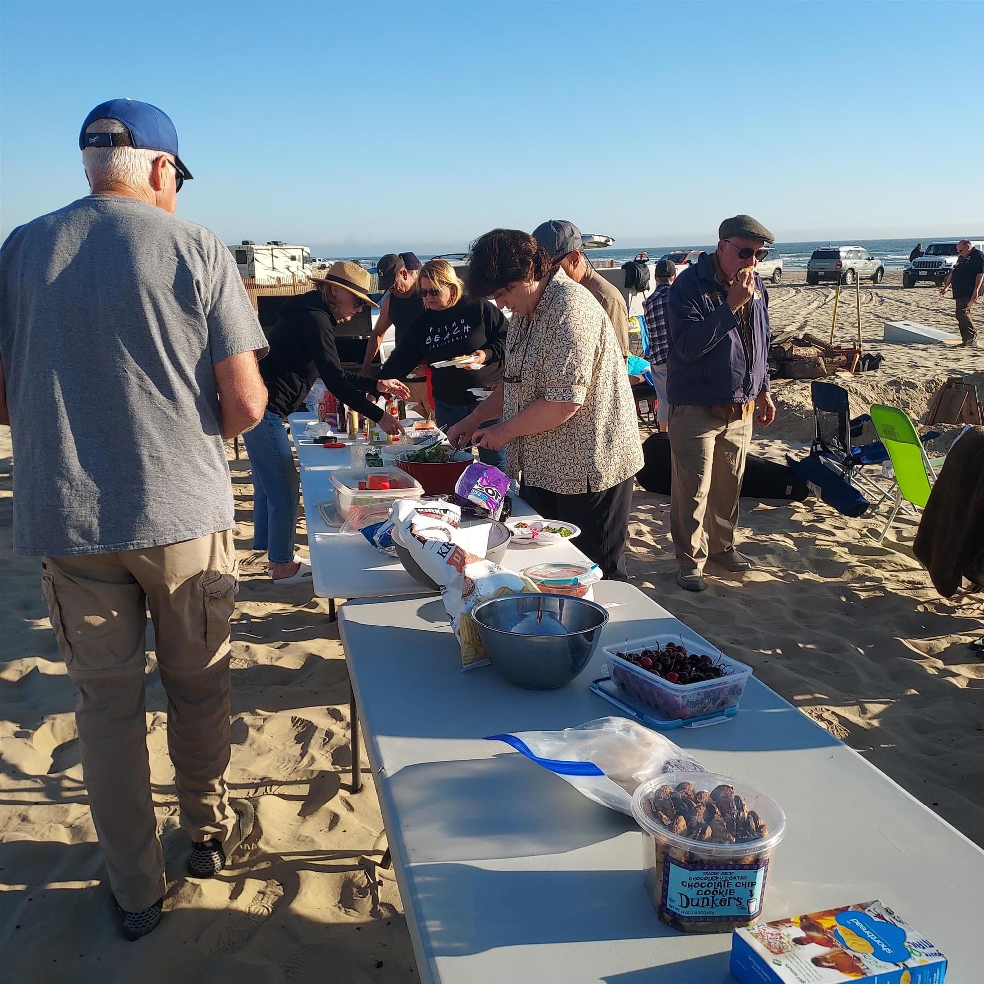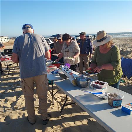 Perfect Oceano Beach weather made for a beautiful evening with delicious brats and dogs, lovely sunset, and a roaring fire! Top it all off with Gary's stuck truck/trailer and a Tsunami Advisory!